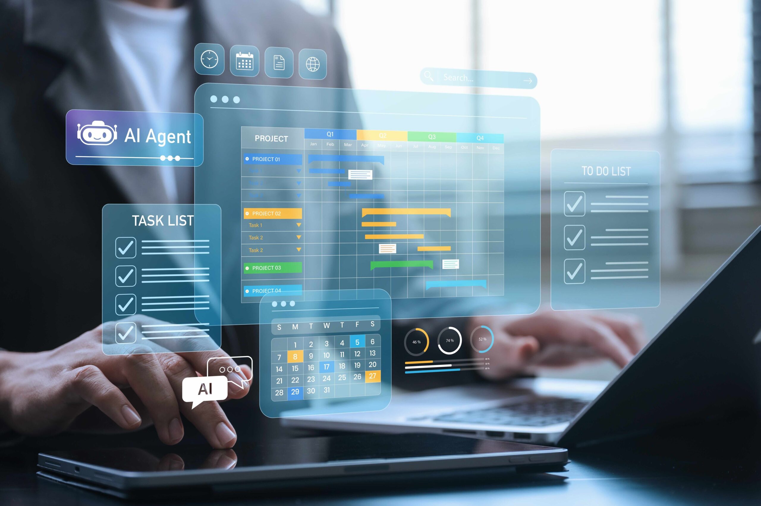 La collaborazione diventa 3.0 grazie alla possibilità di assegnare task direttamente all’AI. Hai a disposizione 81 attività predefinite che supportano la gestione del progetto in tutte le sue fasi. Inoltre, con la nostra assistenza, potrai sviluppare task personalizzati per integrare l’AI come vero collaboratore digitale della tua azienda.